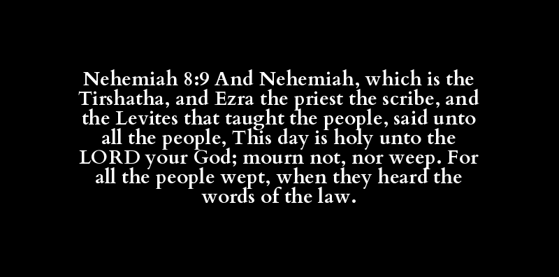 Nehemiah 8:9 And Nehemiah, which is the Tirshatha, and Ezra the priest the scribe, and the Levites that taught the people, said unto all the people, This day is holy unto the LORD your God; mourn not, nor weep. For all the people wept, when they heard the words of the law.