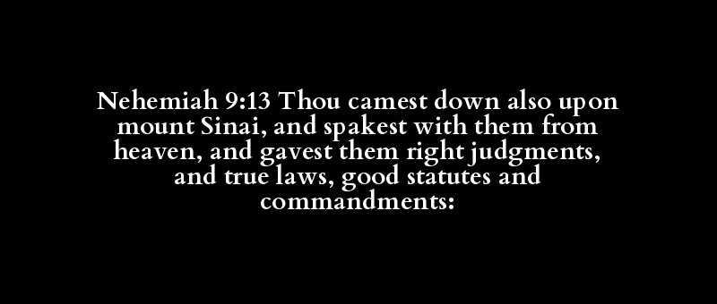 Nehemiah 9:13 Thou camest down also upon mount Sinai, and spakest with them from heaven, and gavest them right judgments, and true laws, good statutes and commandments: