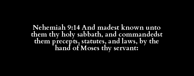 Nehemiah 9:14 And madest known unto them thy holy sabbath, and commandedst them precepts, statutes, and laws, by the hand of Moses thy servant: