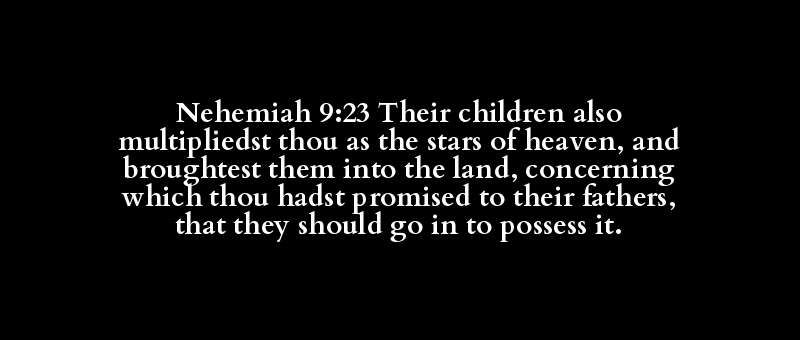 Nehemiah 9:23 Their children also multipliedst thou as the stars of heaven, and broughtest them into the land, concerning which thou hadst promised to their fathers, that they should go in to possess it.