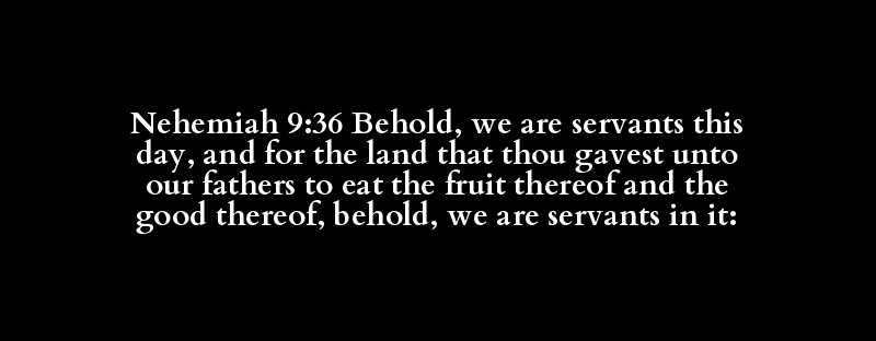 Nehemiah 9:36 Behold, we are servants this day, and for the land that thou gavest unto our fathers to eat the fruit thereof and the good thereof, behold, we are servants in it: