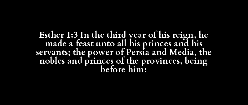 Esther 1:3 In the third year of his reign, he made a feast unto all his princes and his servants; the power of Persia and Media, the nobles and princes of the provinces, being before him: