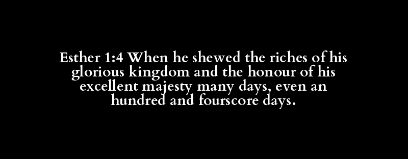 Esther 1:4 When he shewed the riches of his glorious kingdom and the honour of his excellent majesty many days, even an hundred and fourscore days.