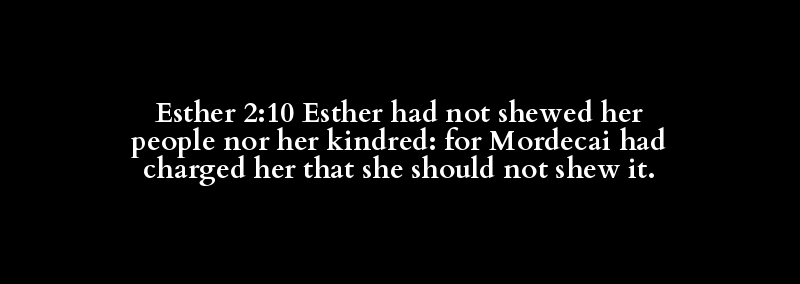Esther 2:10 Esther had not shewed her people nor her kindred: for Mordecai had charged her that she should not shew it.