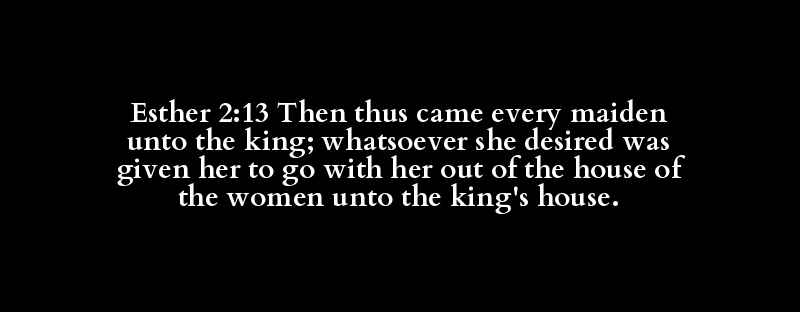 Esther 2:13 Then thus came every maiden unto the king; whatsoever she desired was given her to go with her out of the house of the women unto the king's house.