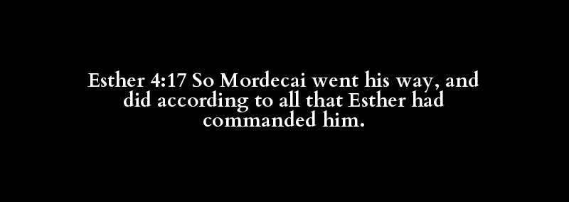Esther 4:17 So Mordecai went his way, and did according to all that Esther had commanded him.