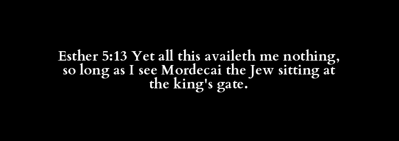Esther 5:13 Yet all this availeth me nothing, so long as I see Mordecai the Jew sitting at the king's gate.