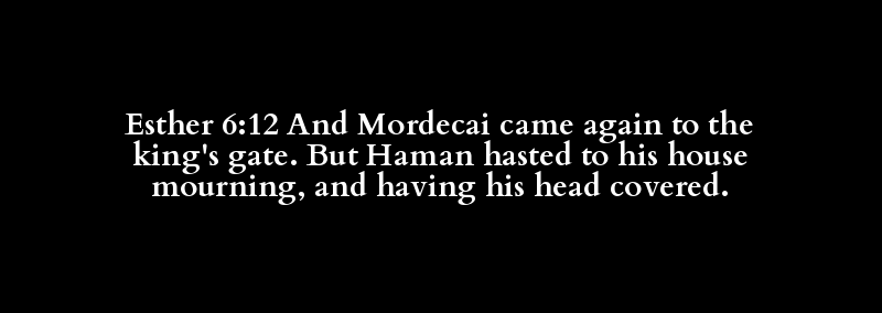 Esther 6:12 And Mordecai came again to the king's gate. But Haman hasted to his house mourning, and having his head covered.