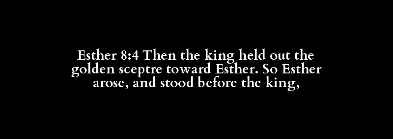 Esther 8:4 Then the king held out the golden sceptre toward Esther. So Esther arose, and stood before the king,