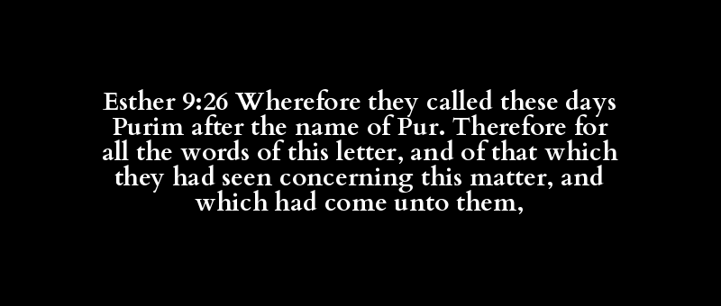 Esther 9:26 Wherefore they called these days Purim after the name of Pur. Therefore for all the words of this letter, and of that which they had seen concerning this matter, and which had come unto them,