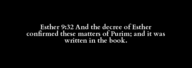 Esther 9:32 And the decree of Esther confirmed these matters of Purim; and it was written in the book.