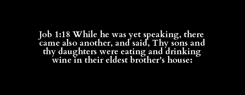 Job 1:18 While he was yet speaking, there came also another, and said, Thy sons and thy daughters were eating and drinking wine in their eldest brother's house: