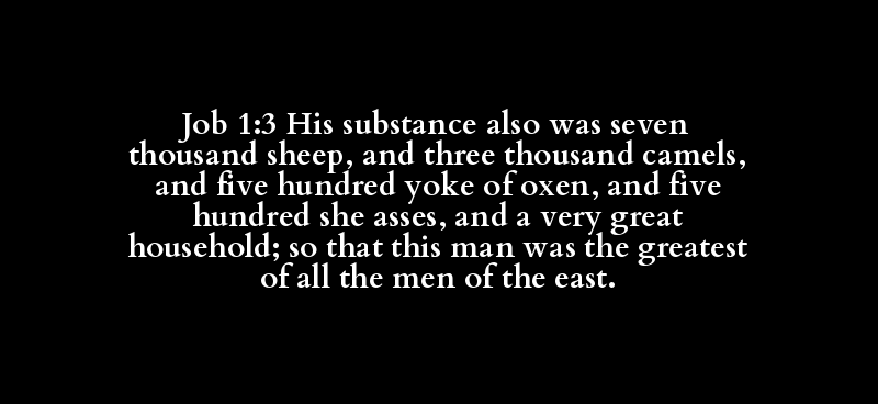 Job 1:3 His substance also was seven thousand sheep, and three thousand camels, and five hundred yoke of oxen, and five hundred she asses, and a very great household; so that this man was the greatest of all the men of the east.
