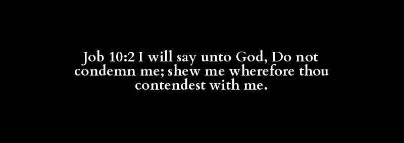 Job 10:2 I will say unto God, Do not condemn me; shew me wherefore thou contendest with me.