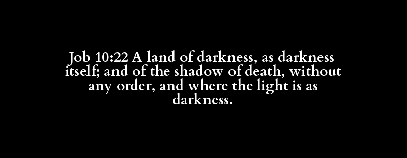 Job 10:22 A land of darkness, as darkness itself; and of the shadow of death, without any order, and where the light is as darkness.