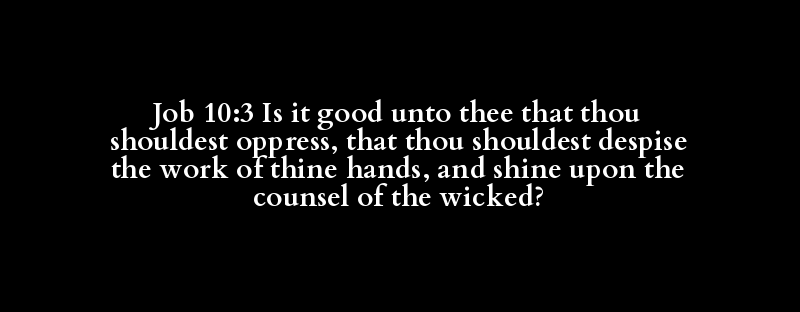 Job 10:3 Is it good unto thee that thou shouldest oppress, that thou shouldest despise the work of thine hands, and shine upon the counsel of the wicked?