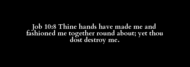 Job 10:8 Thine hands have made me and fashioned me together round about; yet thou dost destroy me.