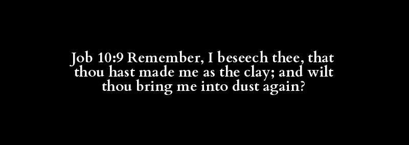Job 10:9 Remember, I beseech thee, that thou hast made me as the clay; and wilt thou bring me into dust again?