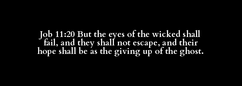 Job 11:20 But the eyes of the wicked shall fail, and they shall not escape, and their hope shall be as the giving up of the ghost.