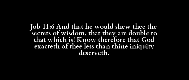 Job 11:6 And that he would shew thee the secrets of wisdom, that they are double to that which is! Know therefore that God exacteth of thee less than thine iniquity deserveth.