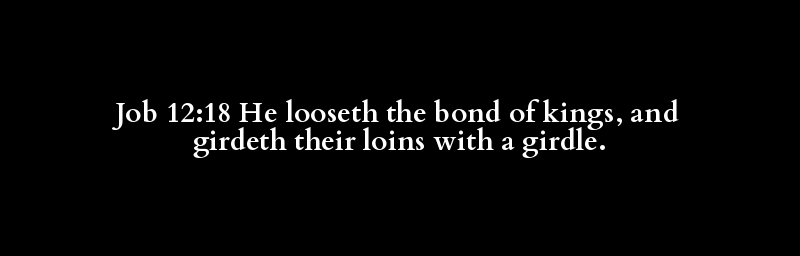 Job 12:18 He looseth the bond of kings, and girdeth their loins with a girdle.
