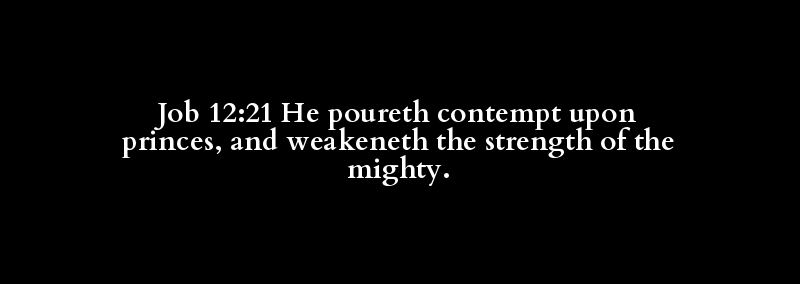 Job 12:21 He poureth contempt upon princes, and weakeneth the strength of the mighty.
