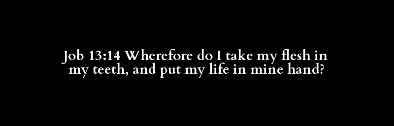 Job 13:14 Wherefore do I take my flesh in my teeth, and put my life in mine hand?