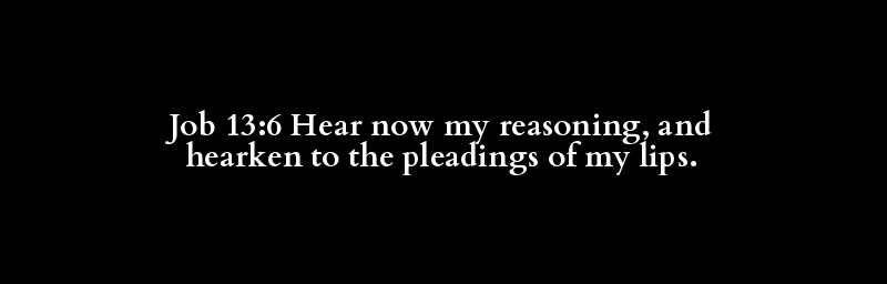 Job 13:6 Hear now my reasoning, and hearken to the pleadings of my lips.