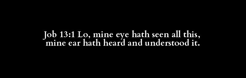 Job 13:1 Lo, mine eye hath seen all this, mine ear hath heard and understood it.