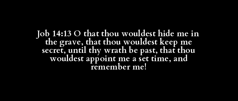 Job 14:13 O that thou wouldest hide me in the grave, that thou wouldest keep me secret, until thy wrath be past, that thou wouldest appoint me a set time, and remember me!