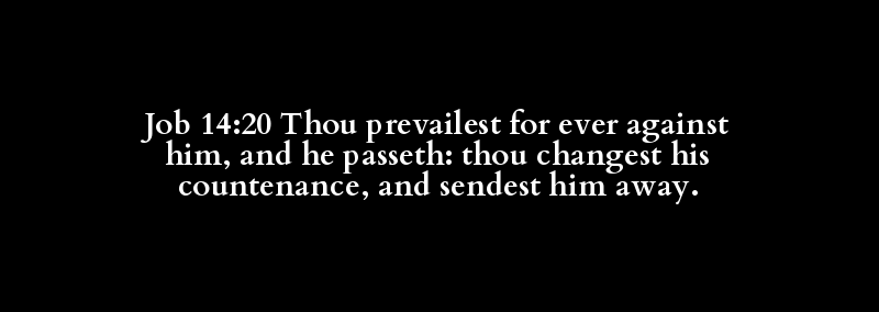 Job 14:20 Thou prevailest for ever against him, and he passeth: thou changest his countenance, and sendest him away.