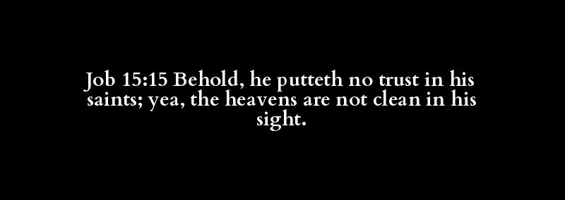 Job 15:15 Behold, he putteth no trust in his saints; yea, the heavens are not clean in his sight.