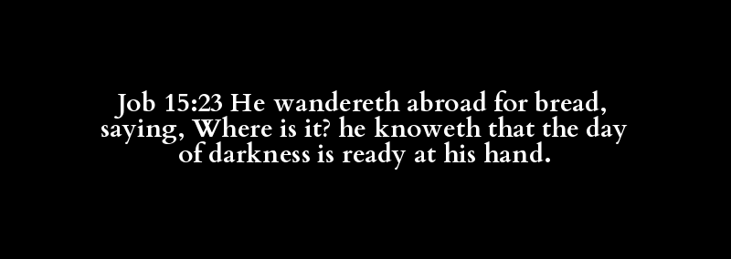 Job 15:23 He wandereth abroad for bread, saying, Where is it? he knoweth that the day of darkness is ready at his hand.