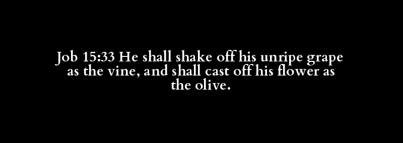 Job 15:33 He shall shake off his unripe grape as the vine, and shall cast off his flower as the olive.