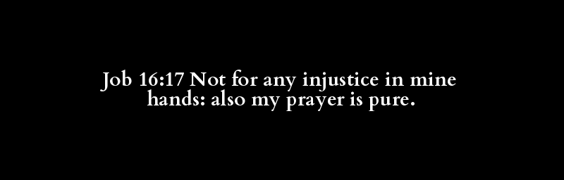 Job 16:17 Not for any injustice in mine hands: also my prayer is pure.
