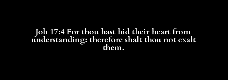 Job 17:4 For thou hast hid their heart from understanding: therefore shalt thou not exalt them.