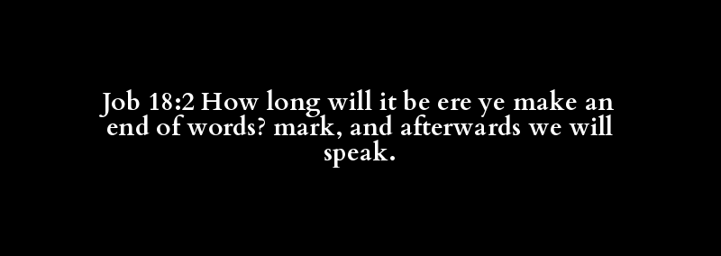 Job 18:2 How long will it be ere ye make an end of words? mark, and afterwards we will speak.