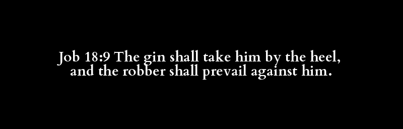 Job 18:9 The gin shall take him by the heel, and the robber shall prevail against him.