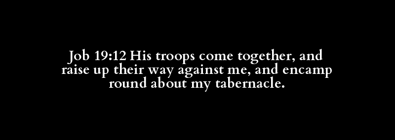 Job 19:12 His troops come together, and raise up their way against me, and encamp round about my tabernacle.