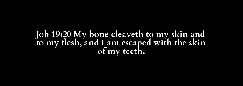 Job 19:20 My bone cleaveth to my skin and to my flesh, and I am escaped with the skin of my teeth.