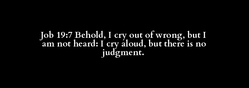 Job 19:7 Behold, I cry out of wrong, but I am not heard: I cry aloud, but there is no judgment.