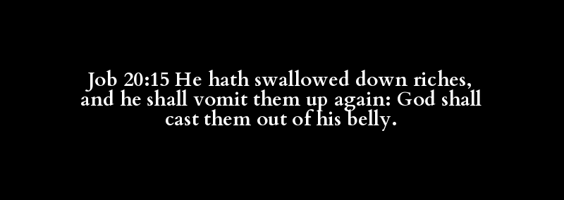 Job 20:15 He hath swallowed down riches, and he shall vomit them up again: God shall cast them out of his belly.