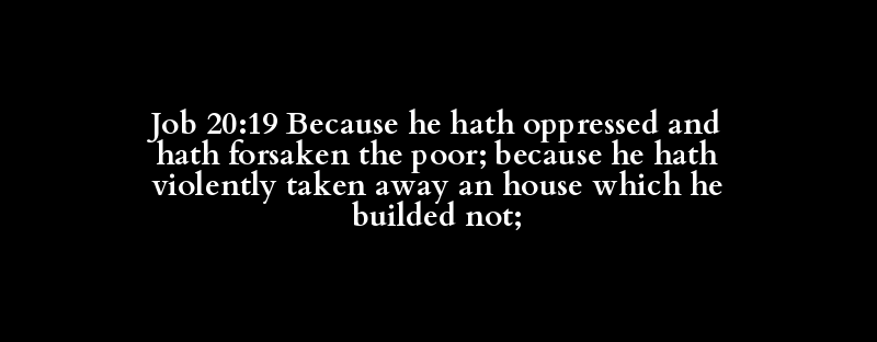 Job 20:19 Because he hath oppressed and hath forsaken the poor; because he hath violently taken away an house which he builded not;