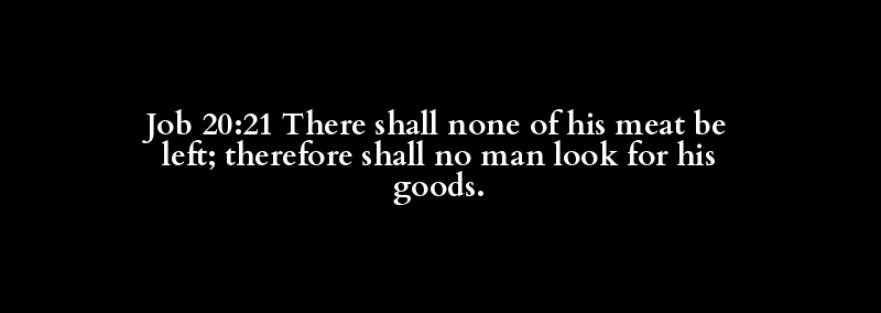 Job 20:21 There shall none of his meat be left; therefore shall no man look for his goods.