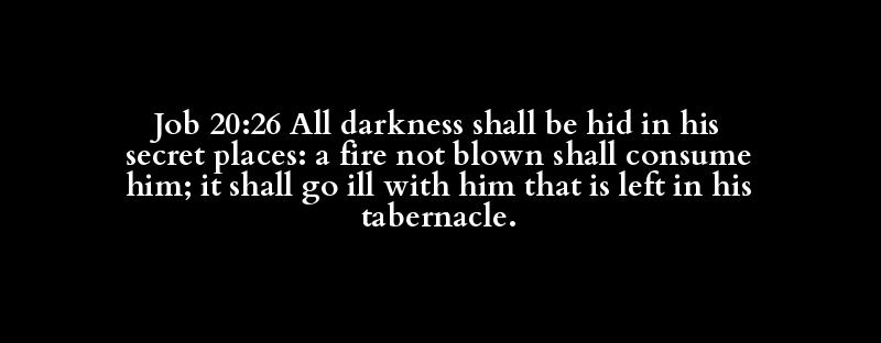 Job 20:26 All darkness shall be hid in his secret places: a fire not blown shall consume him; it shall go ill with him that is left in his tabernacle.
