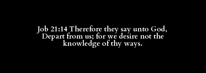 Job 21:14 Therefore they say unto God, Depart from us; for we desire not the knowledge of thy ways.