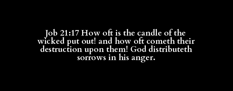 Job 21:17 How oft is the candle of the wicked put out! and how oft cometh their destruction upon them! God distributeth sorrows in his anger.