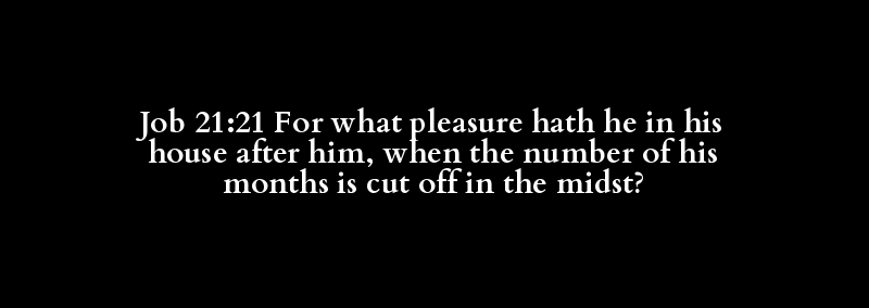 Job 21:21 For what pleasure hath he in his house after him, when the number of his months is cut off in the midst?