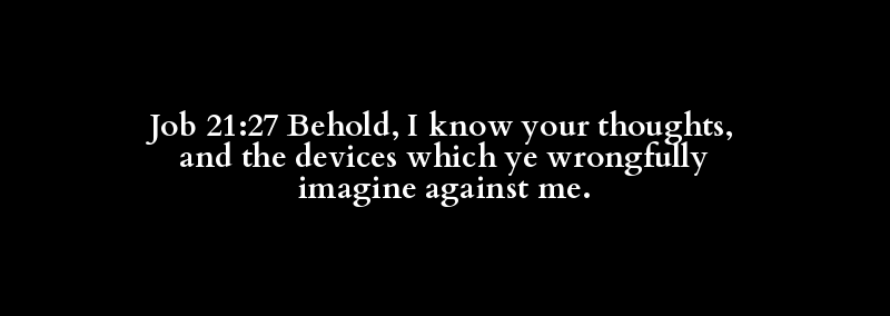 Job 21:27 Behold, I know your thoughts, and the devices which ye wrongfully imagine against me.