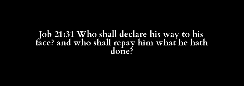 Job 21:31 Who shall declare his way to his face? and who shall repay him what he hath done?